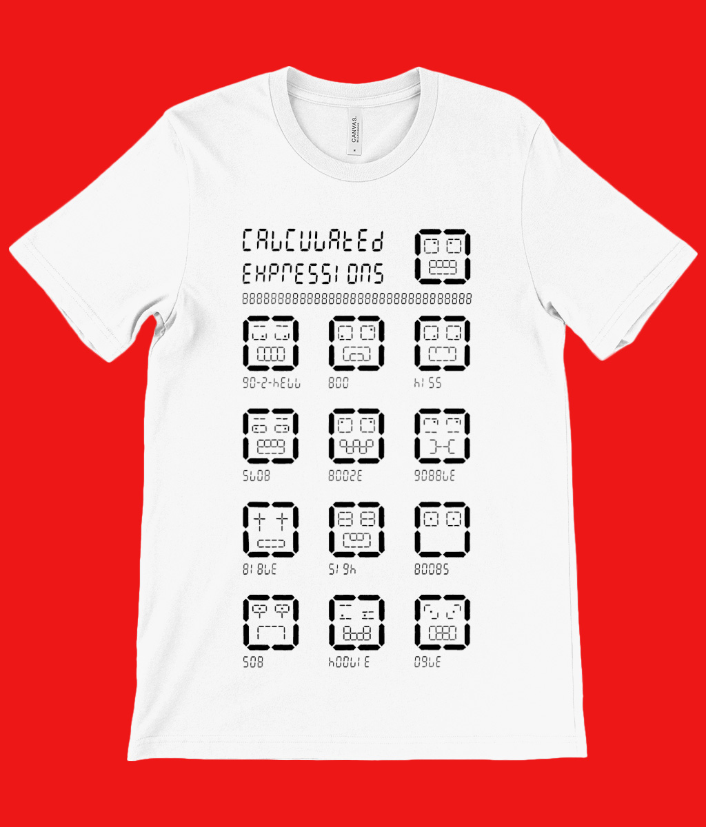 If you're incredibly old, or at least over 28. If you're so retro it hurts but you still appreciate advances in technology. Then you have found yourself in the right place for some basic looking, vintage, humour based gubbins. Remember that time in school when you wrote BOOBS on the calculator using 58008 then turning it upside down? I do... buy a T-Shirt.