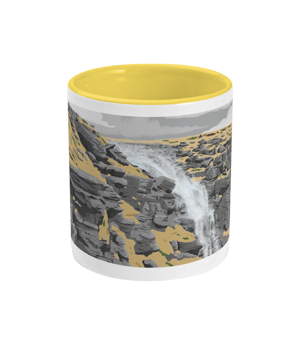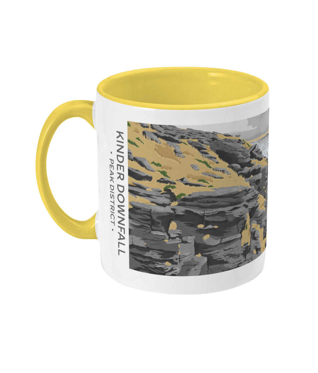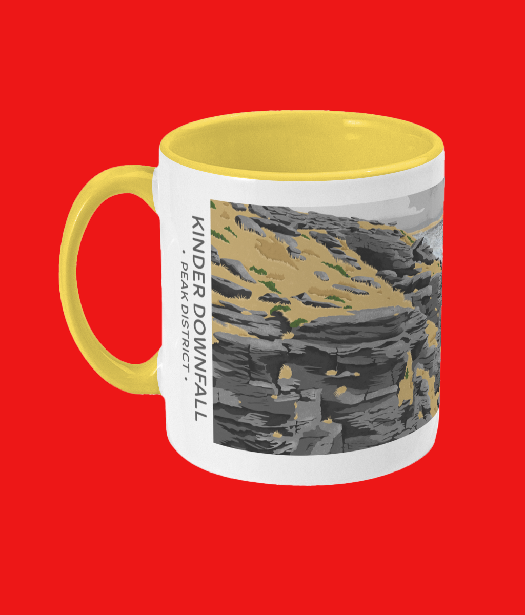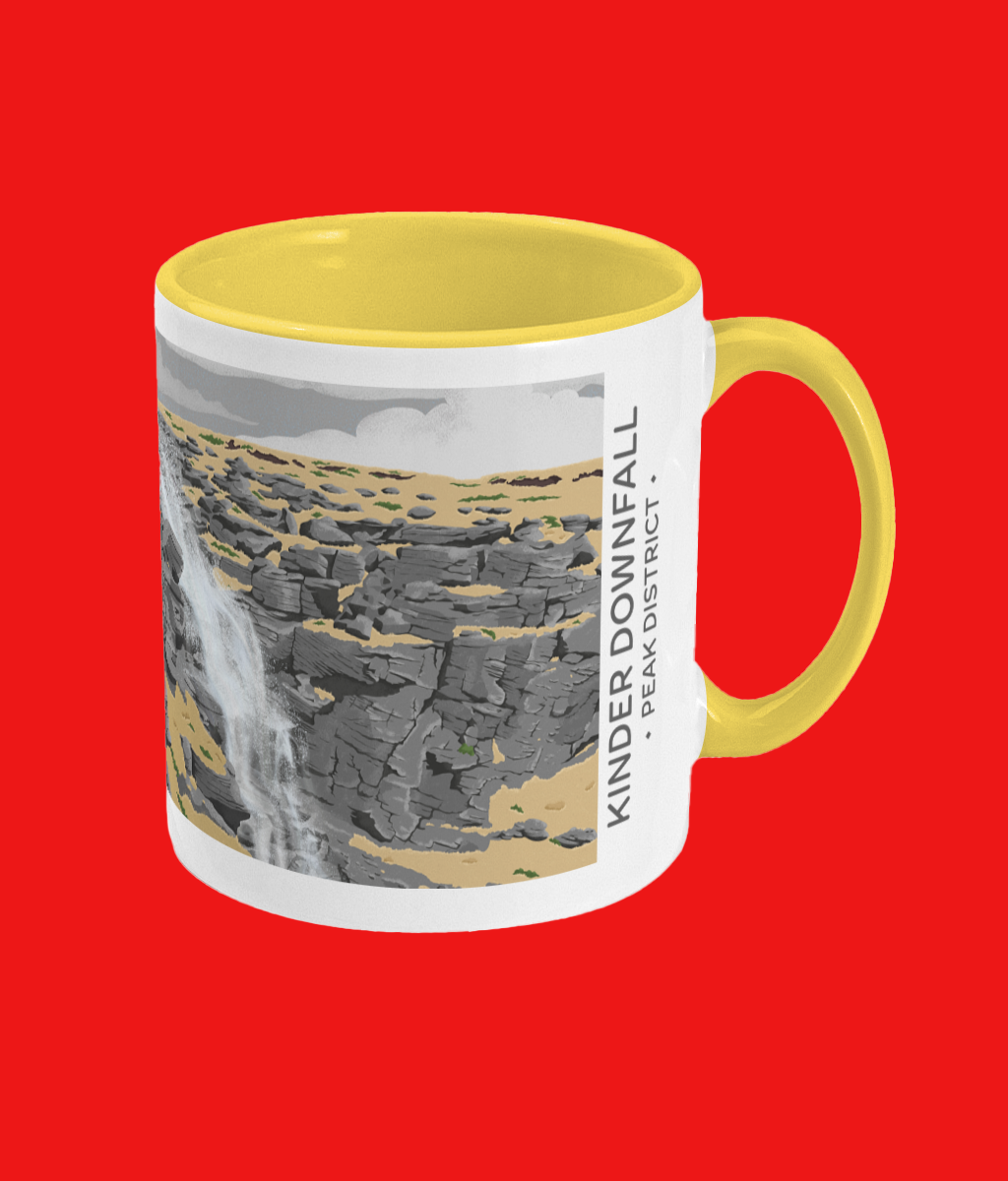 Take a break and think about your next wander into the Peak District, with this Kinder Downfall two-toned mug.