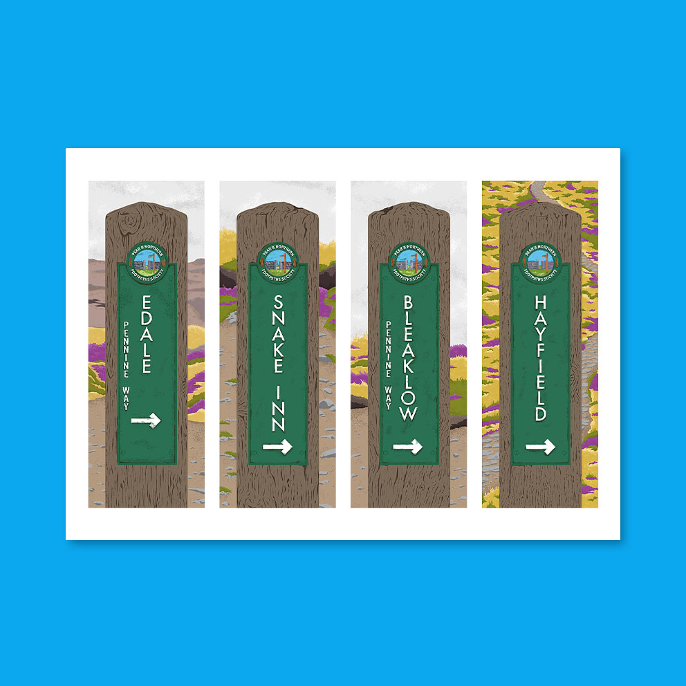 Kinder Scout – Choose your own adventure – Four Way Sign – Landscape Lustre Art Print