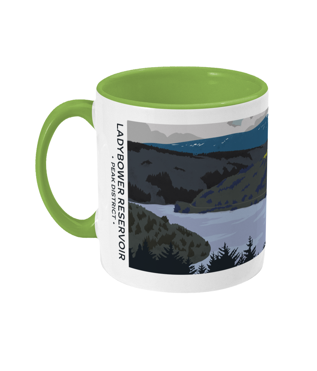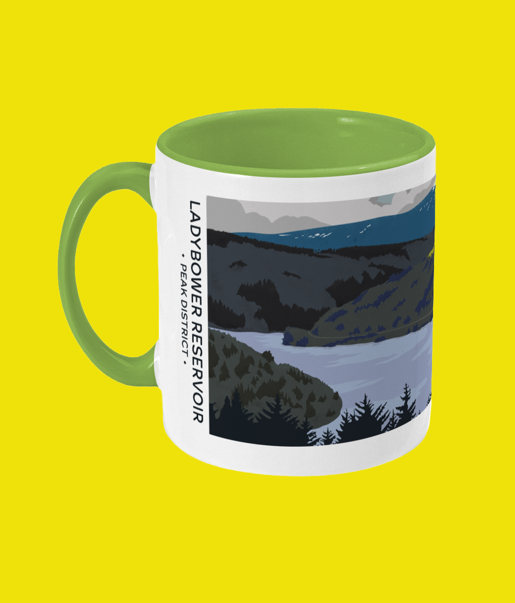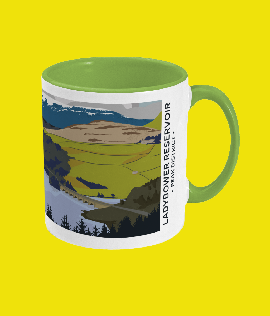 Take a break and think about your next wander into the Peak District, with this Ladybower Reservoir and Snake Pass two-toned mug.